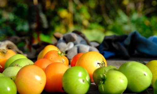 Sunday morning sunshine helped us to power through the jobs - planting bulbs, weeding planters, sacking up leaves, tackling the compost area, setting up our new shredder and collecting up all of the green tomatoes!